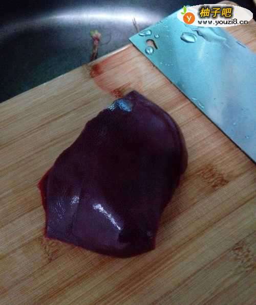 2猪肝菠菜枸杞汤的原材料之一猪肝,将猪肝洗净,切成片,再放入浸泡10min左右,最后加入适量的盐巴、料酒等调料腌制,如下图: