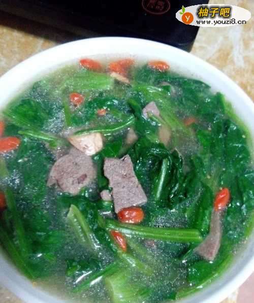 今天经验小编给大家分享的是一道自创养生汤,即是猪肝菠菜枸杞汤;猪肝营养价值:铁质含量丰富,是补血食品中经常用的食物,食用猪肝可调节和改善贫血病人造血系统的生理功可以;猪肝中含有丰富的维生素A,具有维持正常生长和生殖机可以的用处;可以保护眼睛,维持正常视力,有效地防止眼睛干涩、疲劳,维持健康的肤色,对皮肤的瘦身具有首要意义;菠菜营养价值:富含类胡萝卜素、维生素C、维生素K、矿物质(钙质、铁质等)、辅酶Q10等多种营养素,具有养血,止血,敛阴,润燥功可以;枸杞营养价值:含有丰富的胡萝卜素、多种维生素和钙、铁等健康眼睛的必需营养物质,故有明目之功,俗称“明眼子”,可治疗肝血不足、肾阴亏虚引起的视物昏化和夜盲症。接下来就给大家分享下该养生汤的具体烹饪经验: