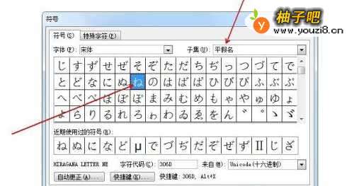 4在“子集”中选择“平假名”,并在下方选中平假名ね,点击“插入”。