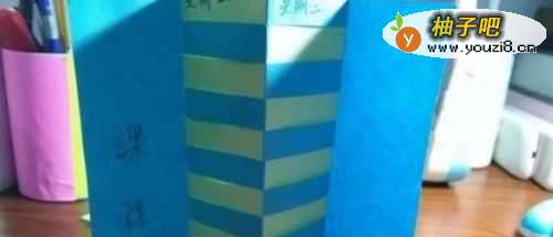 5另一张长方形纸片也是按照刚才的方式塞进正方形纸片,然后再写上日期,或者你喜欢的名言警句,课程表就完成了。