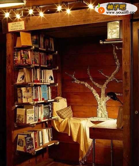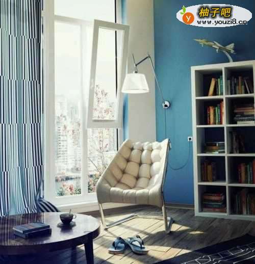 2慵懒风格:适合单身上班族,书籍就在周身,随手可取,摆放躺式沙发,休闲学习两不误,放松身体,充实思想。