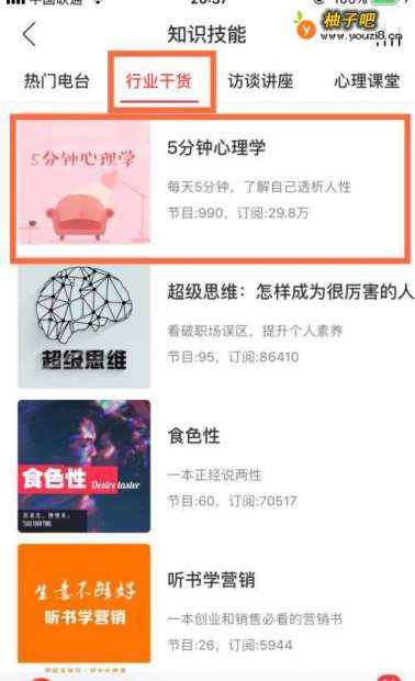 7比如选中【行业干货】,再点击下面的其中一个专辑,比如【5分钟心理学】。