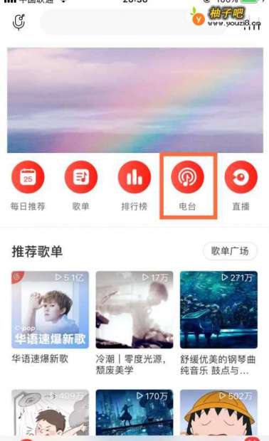 启用软件以后,就能看到有一个【电台】的选项,点开。