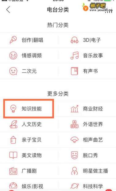 6里面全是【知识技能】的电台,你能再根据上方的分类再进行选择。
