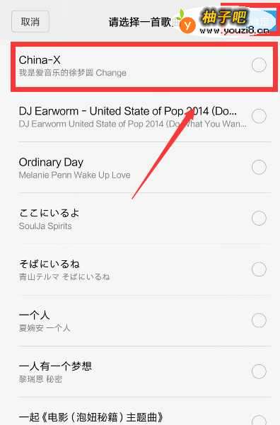 6在配乐功能处点击我们喜欢的一首歌曲,然后点击右上方的确认(如下图)。