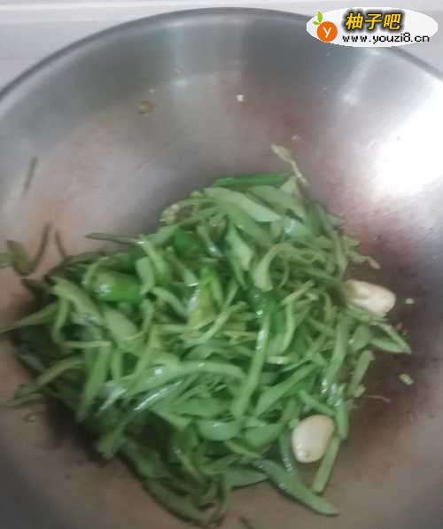 5在加上一点蒜瓣,一起放入扁豆的篮子里去,省去了来回加的麻烦,大家都是素菜,一起炒更好一点。