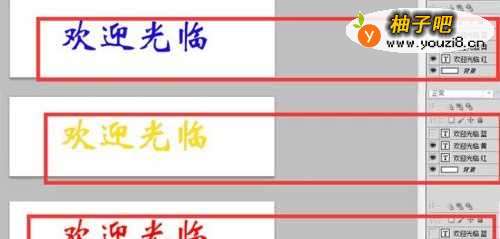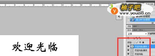 2在空白图层上,新建一个欢迎光临的文字图层。