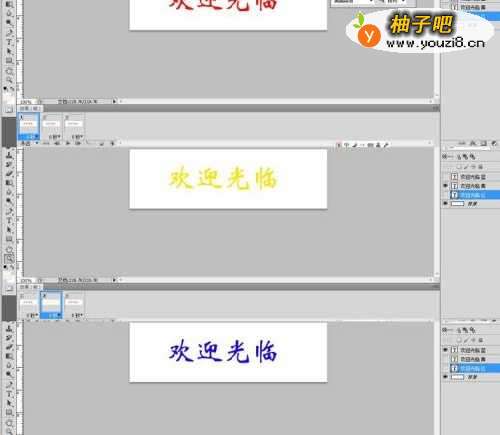 3我策略是让文字字按红、黄、蓝三种颜色闪动变化,因此,我还需要复制两个文字图层。