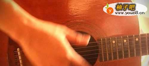 2正确的抱住吉他,右手放在琴箱的响孔与弦桥的中间,左手握住琴颈