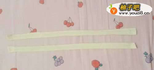 把布裁成两块一样大小的长条状。