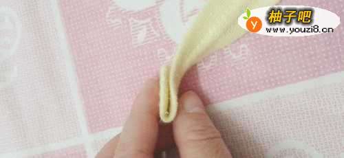 2拿一条布,从一端开始折一下。