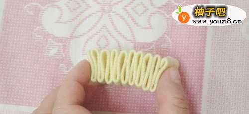 9把留着的线头,穿过第二条折好的S状布条。