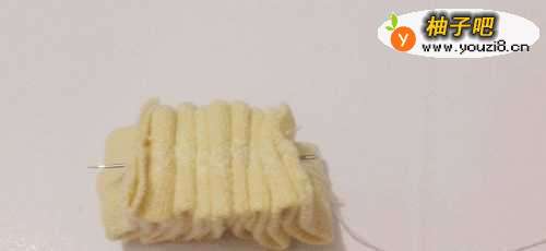 6用针线从内侧横穿过所有的折。