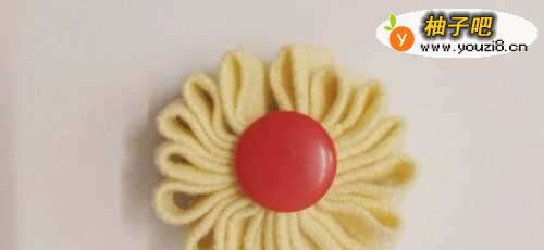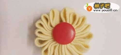 11在花朵的中间,再缝上一个大钮扣,一朵漂亮的布花朵就做好了。