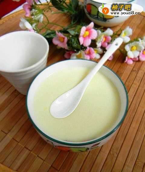9做好的姜奶表面放上小勺不会塌陷进去就是成功。