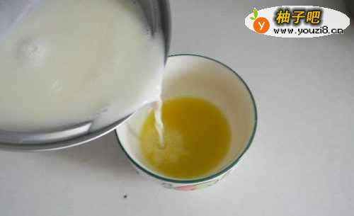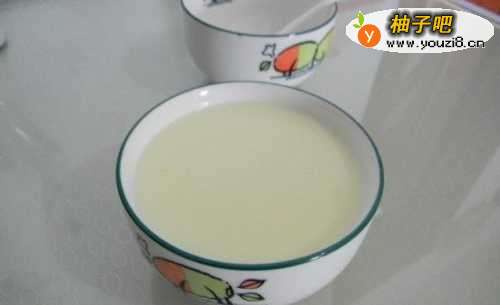 7迅速地将牛奶倒入盛有姜汁的碗中,倒完后请不要搅动或摇晃碗里的牛奶。