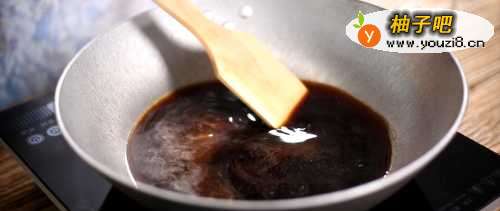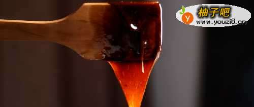 4挂旗:等冰糖融化后,再熬制5-10分钟,通过阿胶的浓稠度来控制阿胶糕的软硬度,阿胶熬制的越稠,阿胶糕口感就偏硬,阿胶熬制的越稀,阿胶糕口感就偏软。(挂旗是指熬制过程用铲子铲起一点阿胶,让阿胶自然流下,在空中停留10秒左右,阿胶在铲子上形成一个旗子一样的形状)