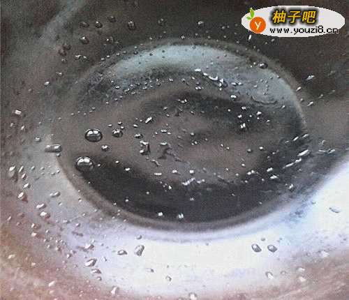 把锅烧热,别让锅内有水珠,倒入豆油,