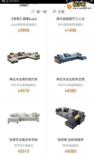 6下滑手机就能浏览所有的沙发图片和价格了,也能切换成大图观,整个界面还是挺清晰简单的。