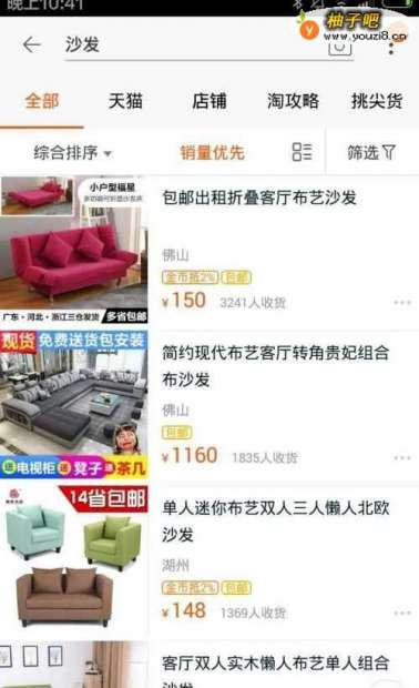 如何用手机淘宝搜索销量排名较高的沙发