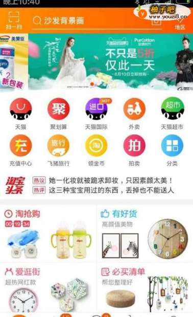 进入到手机淘宝主界面,默认是登录的状态。上方是常用分类,下方都是根据日常的搜索记录淘宝推荐的商品。