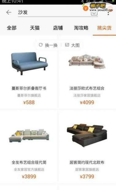 5如果想选择优质的沙发,能点击淘攻略旁边的挑尖货,能直接搜索在淘宝上默认店铺信誉度和销量口碑都不错的沙发。