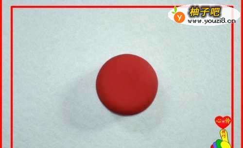 4取红色彩泥适量,制作成“矮圆柱”。
