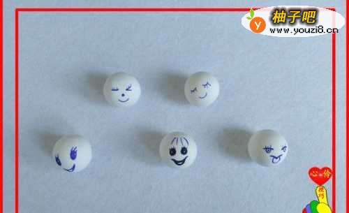 3在小圆球上面,画出不同的图案。