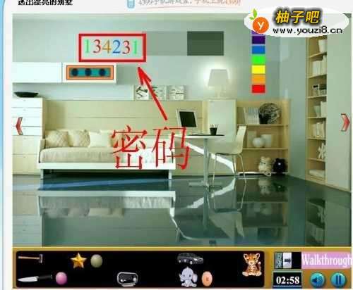 5按照第四场景墙上的密码,依次点击。开启暗箱,取出物品。