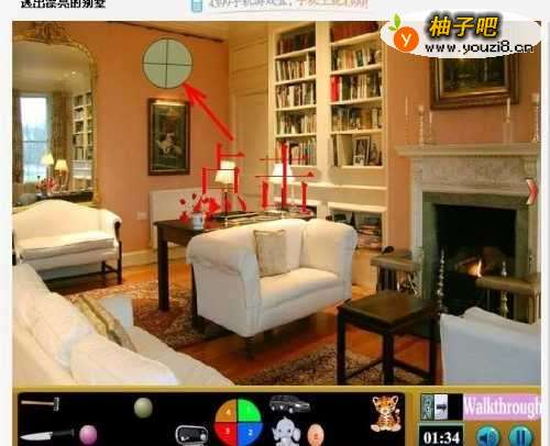 3返回第一场景,点击墙上圆形图案。