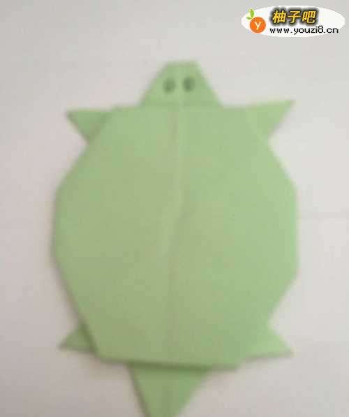 乌龟 又叫鳖 是以甲壳为中心演化而来的爬行动物 因为后背上背有厚厚的甲壳 所以又叫甲鱼 龟的雄性成体会变成黑色,所以又叫乌龟 下面我们就用粉绿色彩纸折叠一只可爱的小乌龟