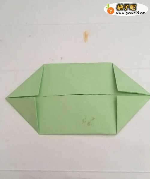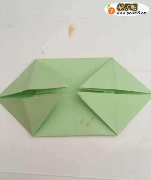 3第三步 折叠完之后取开 然后按折痕都向里折叠出一个双三角 然后折倒压平