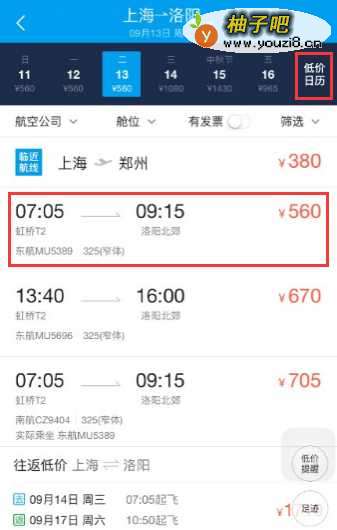 3选择乘坐日期的页面非常直观看,包括实时价格显示,方便我们我们根据需求选择适当价格的机票,如下图,通常机票购买日期建议是在有出行策略的前提下,提前15天部署购买机票,这样时间段的机票通常都比较优惠,当然节假日除外