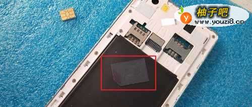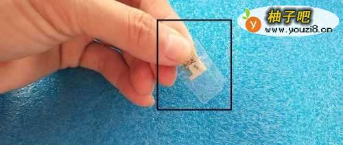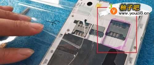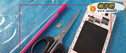 3如图,将透明塑料片铺在手机卡槽上面,放平后用画笔在手机卡槽上面塑料片上画出大卡外围。