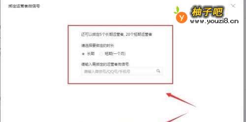 4点击后会启用如下页面,按照提醒进行选择:长期、短期(一个月)单选按钮,选择完成后再点击下方的“邀请绑定”按钮进行绑定运作。