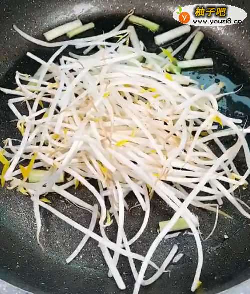 3锅中加入葱段爆香,加入豆芽