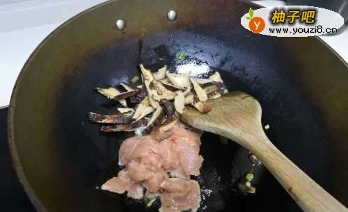 66.下腌制好的肉,香菇,中火爆香。