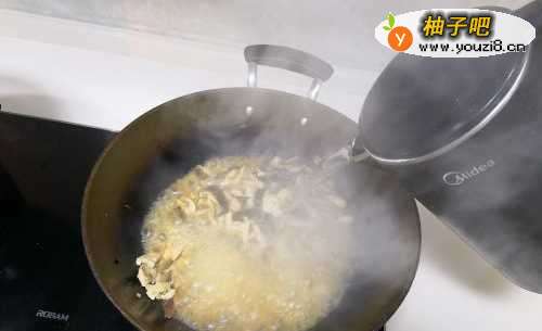 77.加入烧开的水,能多放一点,米粉会吸点水。