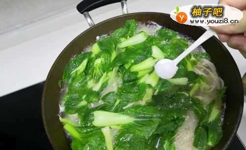 99.下青菜,下盐,下芹菜葱花(这个根据个人口味添加),青菜熟了就能出锅了。