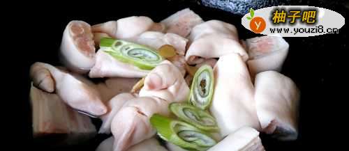 2猪蹄放入水中焯水(冷水下锅),放入葱、姜去腥。