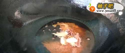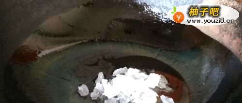 3锅中放油,放入冰糖炒糖色(小火慢炒)。