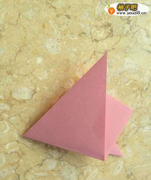 3然后我们把剩下的另外一角向下向后折叠起来,与上面的边对齐