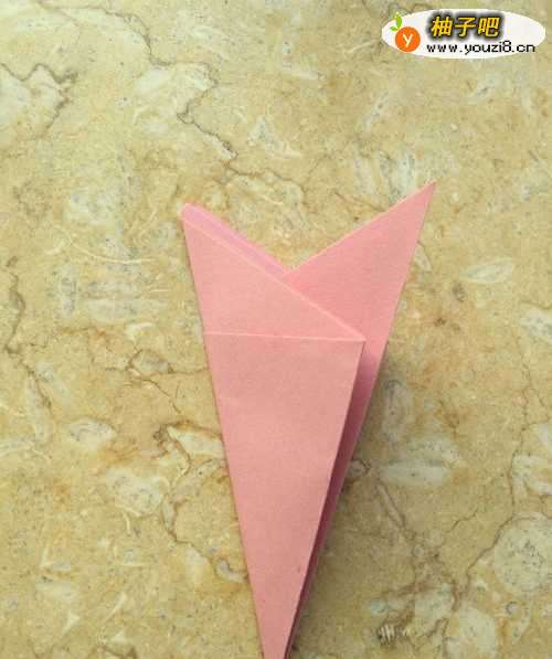 4然后我们再沿下面的尖角为中线把左右两边向中间对折起来