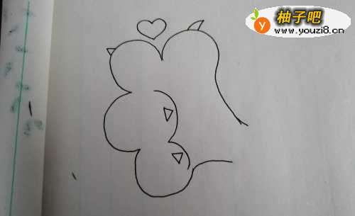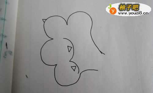 首先画出像花朵般的猫爪子外形,如图。