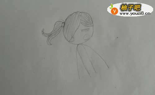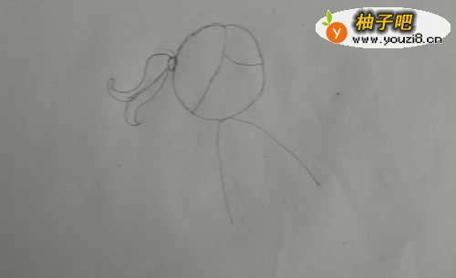 2首先我们先画一个圆当小女孩子的头,画一个近乎三角形的身子。