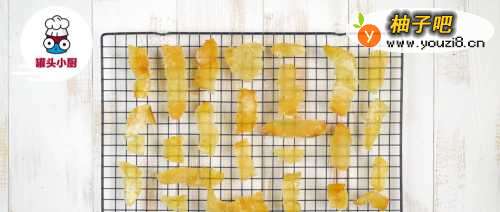 5将柚子皮糖均匀平铺在架子上晾凉,撒上糖粉即可