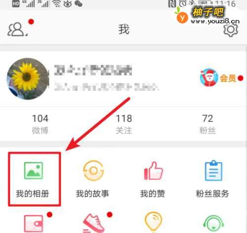 2进入个人中心页面后,我们选择页面中的“我的相册”的图标进入。