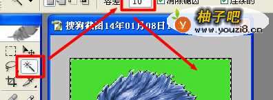 2选择“魔棒”工具,并使用合适的“容差”,一般为“10”,点击背景区域,将其选中。