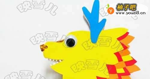 10在龙头上粘上眼睛和龙角。