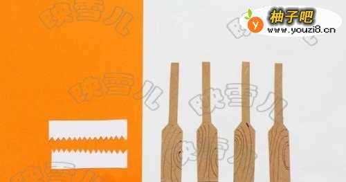 17白色纸卡画出牙齿。纸皮剪出船浆并画出木纹。